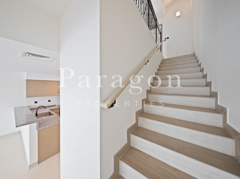 Located on a single row, the villa enjoys enhanced privacy and open views, making it more desirable than standard mid-row properties. With no immediate villas directly behind, residents benefit from a quieter environment and a greater sense of space. The home is ideal for families seeking a peaceful retreat while still being close to Dubai’s main destinations.